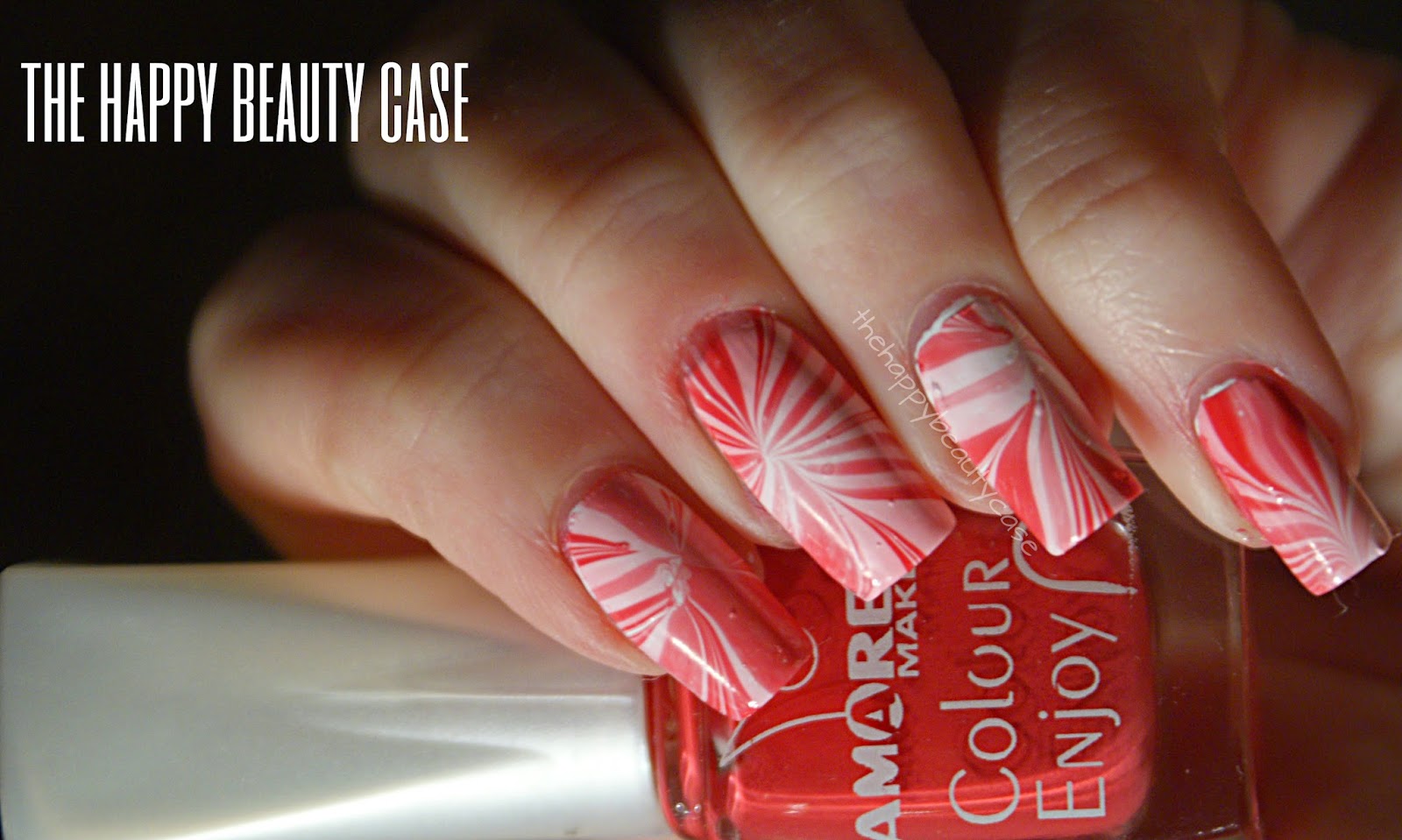 I poured in a cup of room temperature fresh water my nail polishes following this string: white, pink and red.